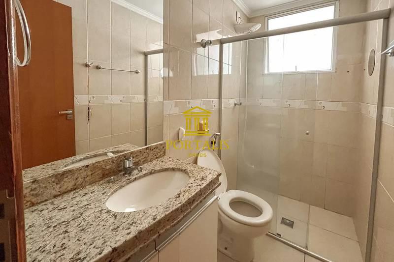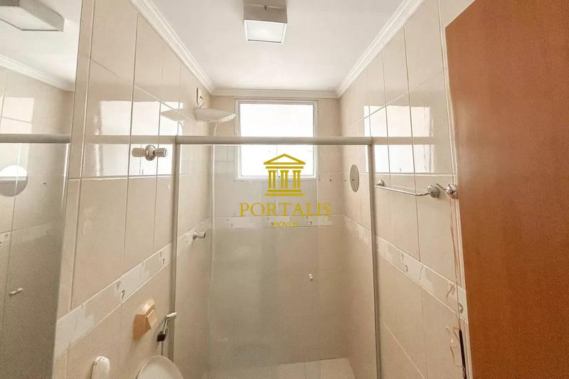 Banheiros (social e suíte) com excelente acabamento em cerâmica, armários, espelhos e box em blindex.